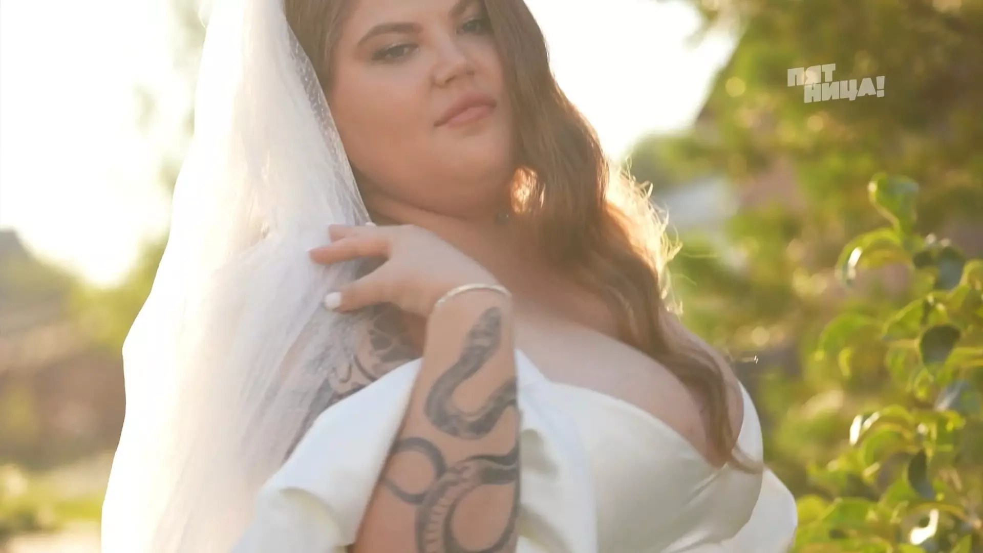 «Это был просто перебор», «Выглядело пошло», «Боялась, что выпадет грудь». Свадебное платье Натальи. Фото: Телеканал «Пятница». Шоу «Четыре Свадьбы» (16+)Досталось и жениху, чей внешний вид участницы оценили как слишком простой: