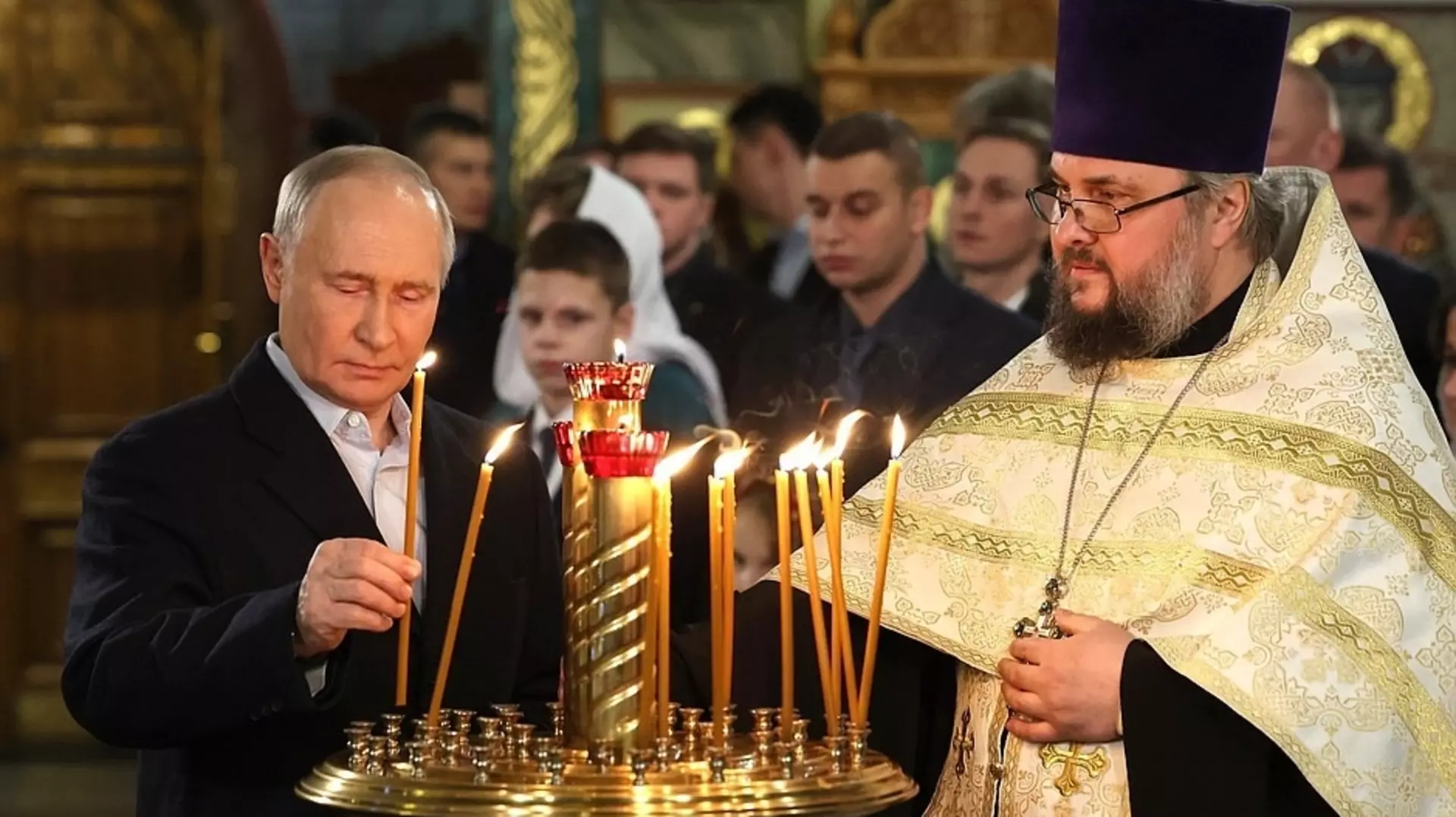 На этот раз президент побывал на церемонии богослужения в храме великомученика Георгия Победоносца. Он находится в Москве на Поклонской горе.