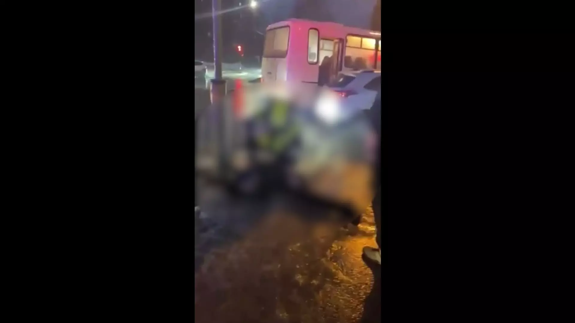 Кадры с места ДТП с автобусом и школьником попали на видео в Кстове (18+).